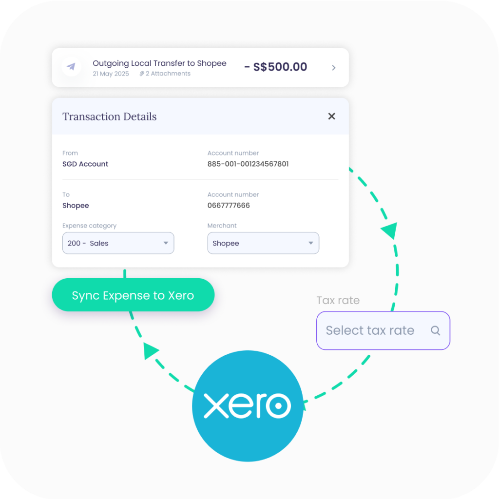 Expense category and tax rate can be tagged on YouBiz and synced to Xero