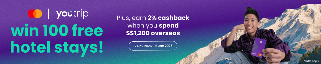 Sign up for YouTrip with <SQVTL10> to get started with S$10 in your account.
