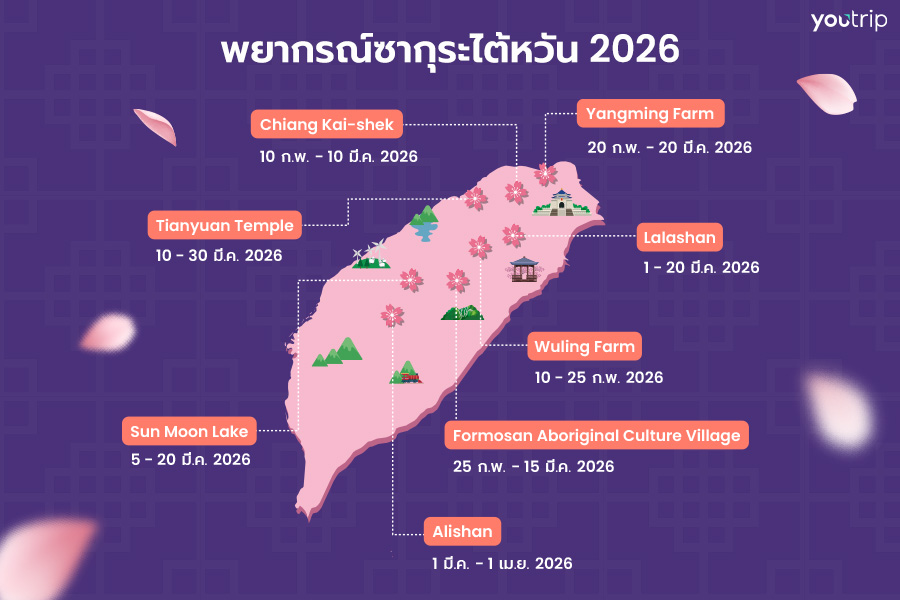 เป็นยังไงบ้างกับ พยากรณ์ซากุระไต้หวัน 2026 และจุดชมดอกซากุระที่สวยที่สุด สามารถนำไปเป็นไกด์เบื้องต้นได้เลย ขอย้ำว่าการ พยากรณ์เป็นเพียงแค่การคาดการณ์ จะขึ้นอยู่กับสภาพอากาศ เมื่อวางแผนที่จะไปเที่ยวไต้หวันแล้ว อย่าลืมสมัคร YouTrip ด้วยนะ เพราะจะช่วยให้คุณเที่ยวไต้หวันใช้จ่ายด้วยเรทที่ดี มั่นใจ ไม่มีทุกค่าธรรมเนียมการใช้จ่าย ประหยัดสุดๆ สมัครเลย