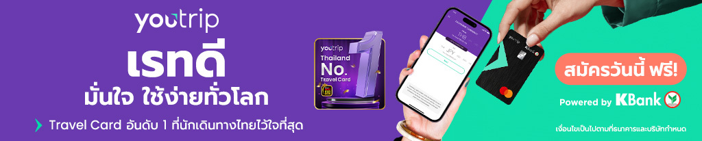 เตรียมตัวให้พร้อม! ตลอด 12 เดือนข้างหน้า YouTrip มีสิทธิพิเศษเพียบ ทั้งโปรโมชั่นเงินคืน (Cashback) ดีลเด็ดจากร้านค้าทั่วโลก และคอนเทนต์สุดเอ็กซ์คลูซีฟจาก บาส Go Went Go ที่จะช่วยให้คุณเที่ยวแบบคุ้มกว่าเดิม สมัคร YouTrip รอไว้ได้เลย สมัครฟรี! ไม่มีค่าธรรมเนียมรายปี
